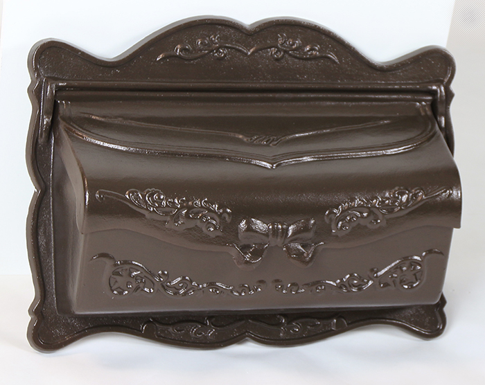 Adorned with a decorative mailflap complete with a bow that doubles as a handle, this heavy-duty cast aluminum mailbox includes the following features: