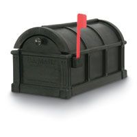 Sunset Pointe mailbox features an elegant design with a contemporary dome and four columns as cornerstones. The prominent overhead archway creates a distinct weather proof design. Heavy-duty single-body polyethylene construction provides maximum leak protection and vandal resistance. UV resistant polymer blend keeps color from fading and prevents rust. Sunset Pointe mailbox is available in an attractive Black color to match your home exterior.