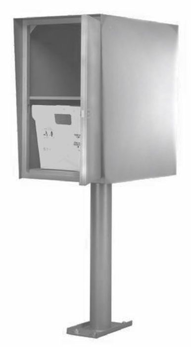 Box, that holds TWO USPS Postal bins, is made of 14 gauge Stainless Steel and has a total of two doors. USPS provides pick-up and deliveries from the front panel,