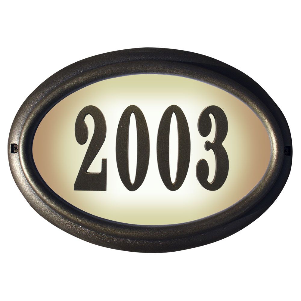 Edgewood Oval Lighted Address Plaque with Cast Aluminum Numbers - French Bronze Frame