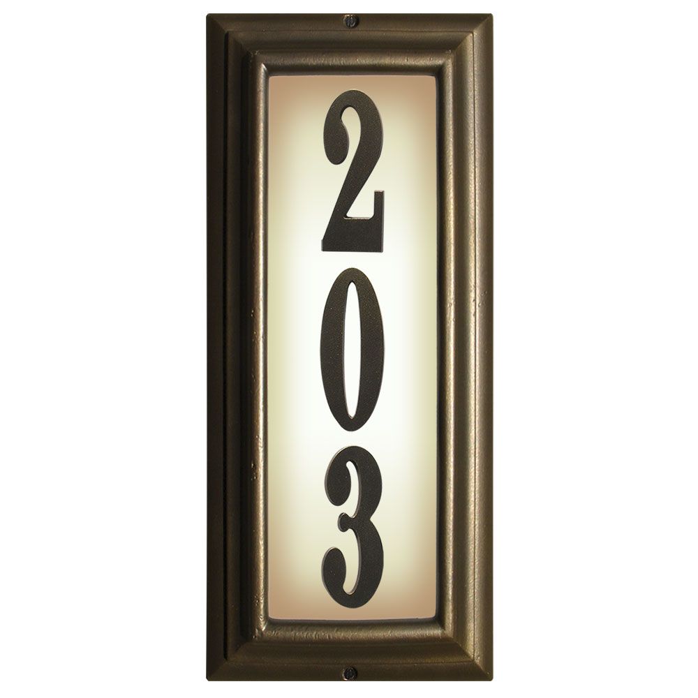 Edgewood Vertical Lighted Address Plaque with Cast Aluminum Numbers - French Bronze Frame