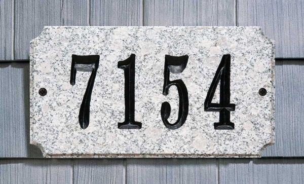 engraved numbers or adhesive-backed raised polymer numbers, the address