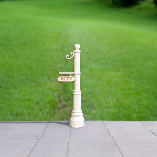 All Streetscape Aluminum Mailbox Posts and Address Plaques are crafted from aircraft grade aluminum tube and U.S. cast aluminum components. They are finished with high-grade exterior enamel paint in a Manila Tan color, a shade in between an off white and a light tan, which is compatible with any home color and style.