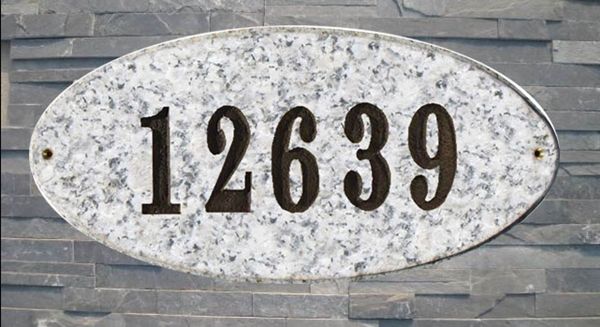engraved numbers or adhesive-backed raised polymer numbers, the address